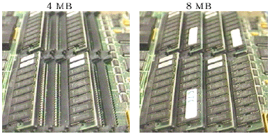 According to the Hardware FAQ, this machine can accomodate 16, 1MB SIMMS, but, it's really 4 banks or 4MB each. Thus, if the first 2 banks allow the use of 4MB SIMMS, then you have 2 banks of 16 PLUS 2 banks of 4 == 32 plus 8 = 40MB.It's difficult to see in the images I took from above, but every other SIMM slot is hidden by a SIMM right now. Look at this image comparing a 4MB install of RAM with an 8MB install of RAM.