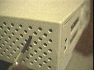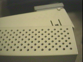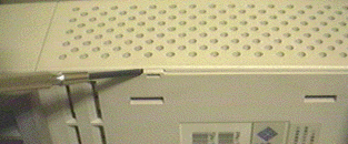 This shows the hole in which you need to insert something to push against the internal latch to release the top half from the bottom half of the 411 case.
